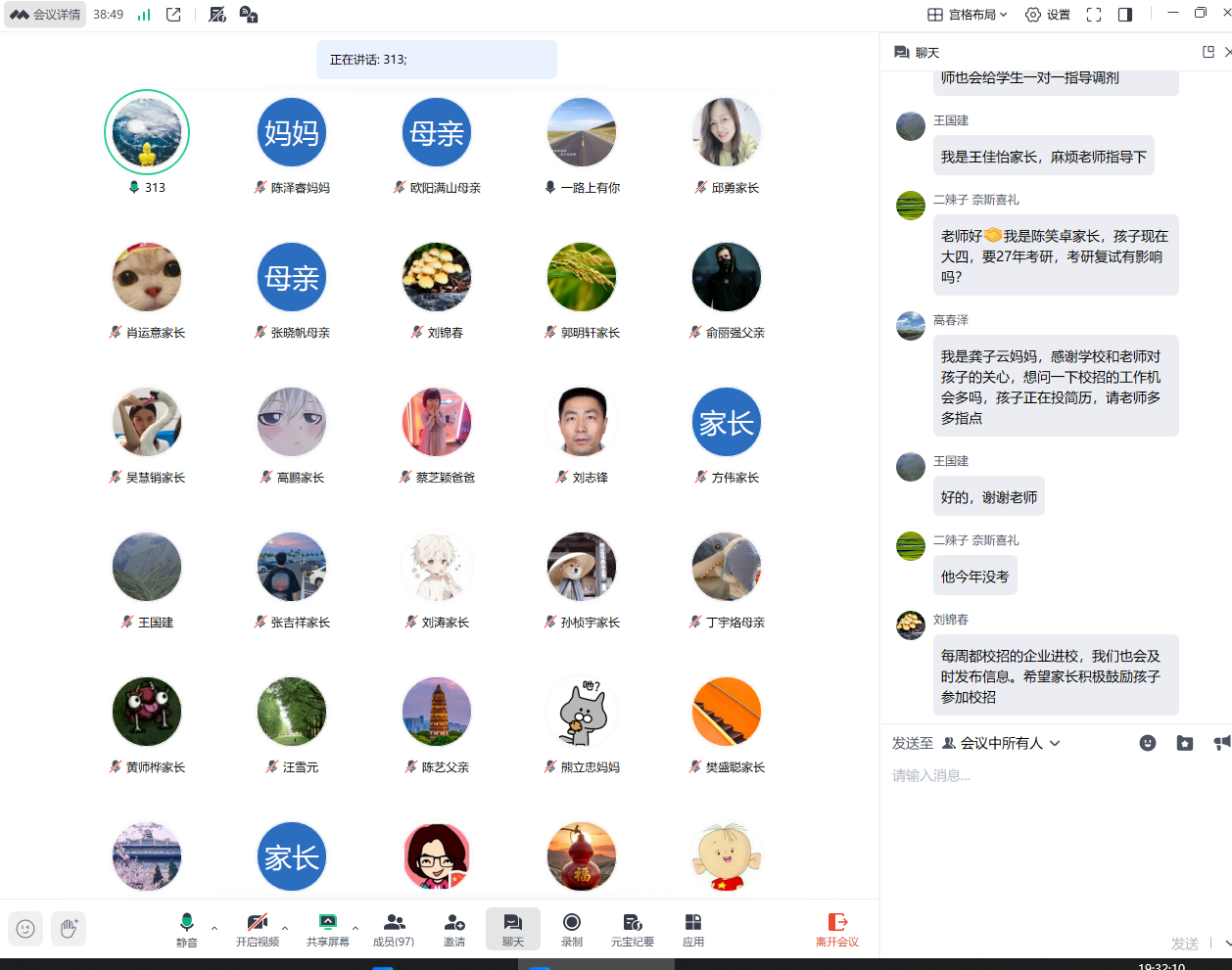 会上,巩文文老师围绕当前就业进展、考研情况、学院“访企拓岗”专项行动及帮扶举措作了详细说明,帮助家长全面了解学生在校状态及学院就业服务体系。在互动答疑环节,各位老师就家长们关心的校园招聘、参军入伍、考研复试等问题逐一解答。陈晓希望家校共筑就业“护航网”,引导孩子们树立“先就业、再择业”观念,主动出击,拓展就业渠道,反对盲目“二战”,去基层建功立业。