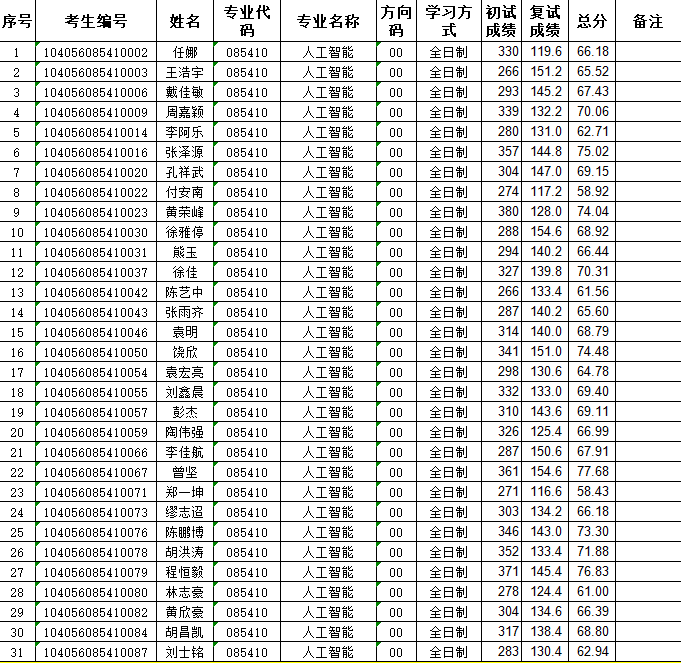 人工智能与信息工程学院2026年研究生复试成绩公示表(第一志愿)